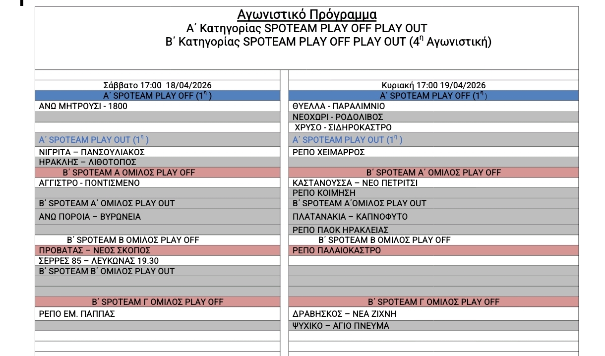 Πρόγραμμα αγώνων ΕΠΣ Σερρών 18-19/04