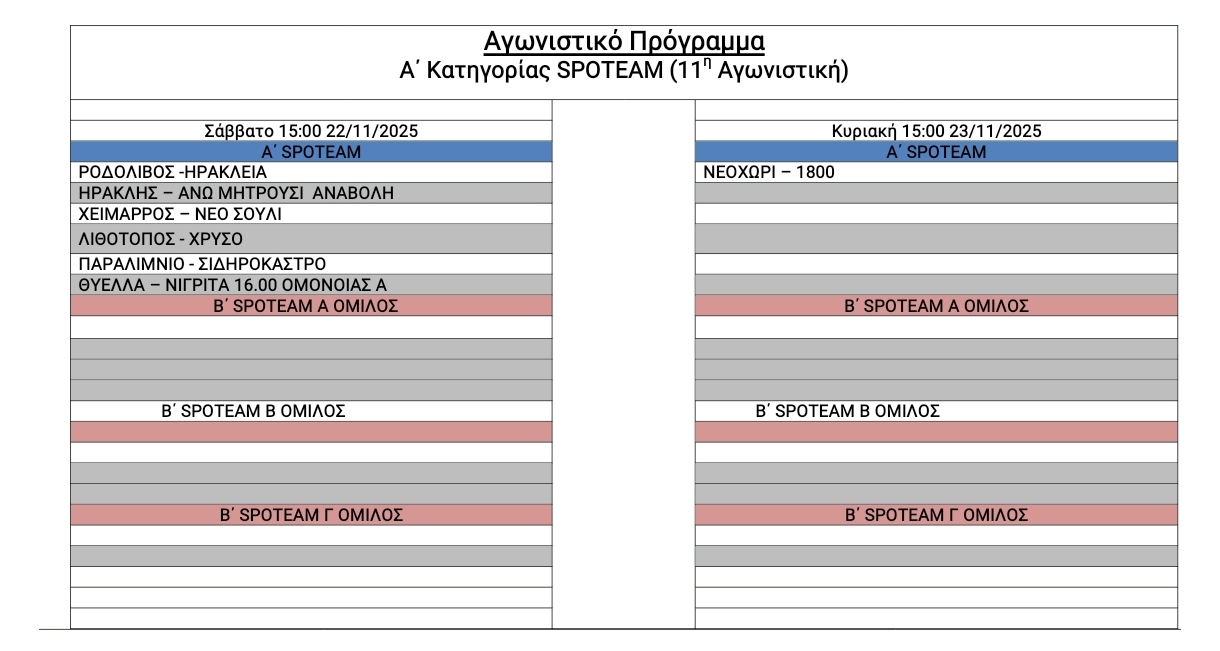 Πρόγραμμα αγώνων Ε.Π.Σ.ΣΕΡΡΩΝ 22-23/11